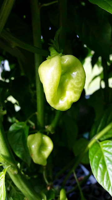 Kauden ainoa PI bacca osoittautui mysteeri chinenseksi. Mikähän tämä mahtaa olla? Podilla kokoa joku 3-4cm. Idättely vaiheessa tämä ei ole voinut mennä sekaisin, kun ainoa chinense tälle kaudelle piti olla Rocato ja tämä ei kyllä Rocato ole.